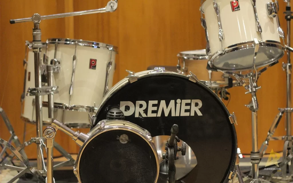 Som de bateria é nossa especialidade. A profundidade de som dessa bateria é inquestionável. A Premier inglesa tem o melhor bumbo que você irá conseguir encontrar sem usar nenhum recurso de equalização. Tons Power-tons e uma variedade de caixas que irão resolver qualquer estilo sonoro. Isso tudo somado à qualidade acústica de nossas salas de gravação garantem toda a pressão sonora tão desejada nas gravações profissionais.
