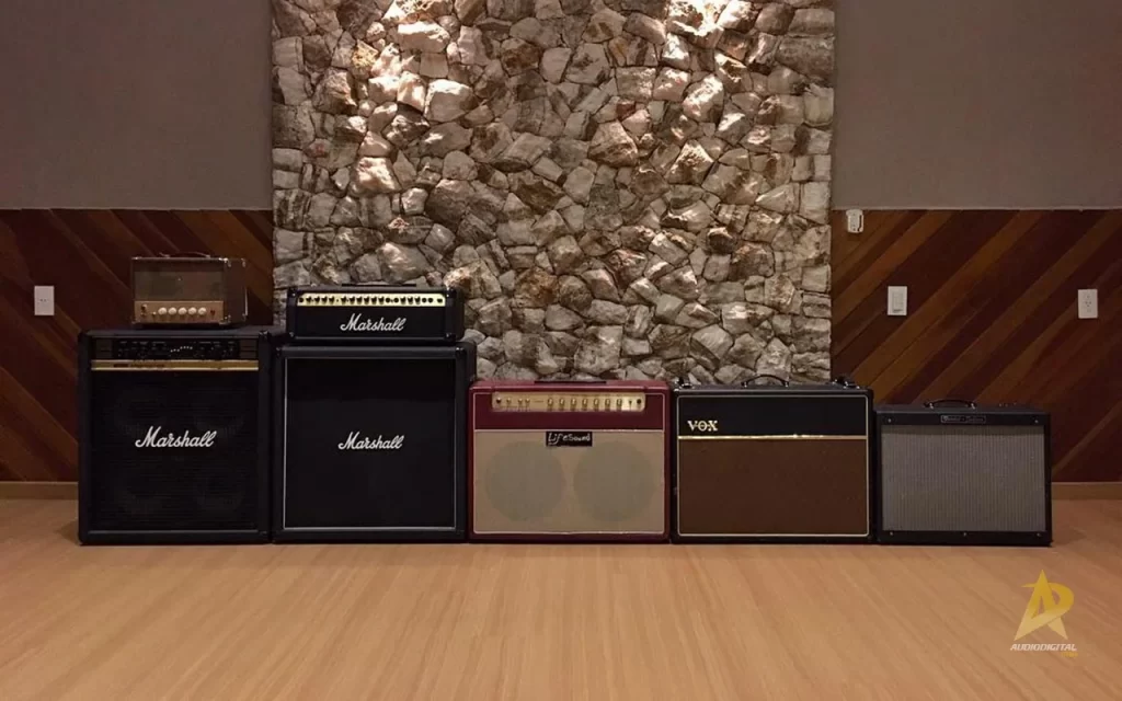 Levamos som de guitarra muito a sério, por isso temos uma coleção de amplificadores de guitarra e baixo muito versátil e de qualidade. Unido à uma estrutura elétrica perfeita, temos muito punch de distorções com mínimo ruído, dispensando até o uso de pedais de distorção, garantindo a qualidade e variedade de timbres de seus solos e bases de guitarra.